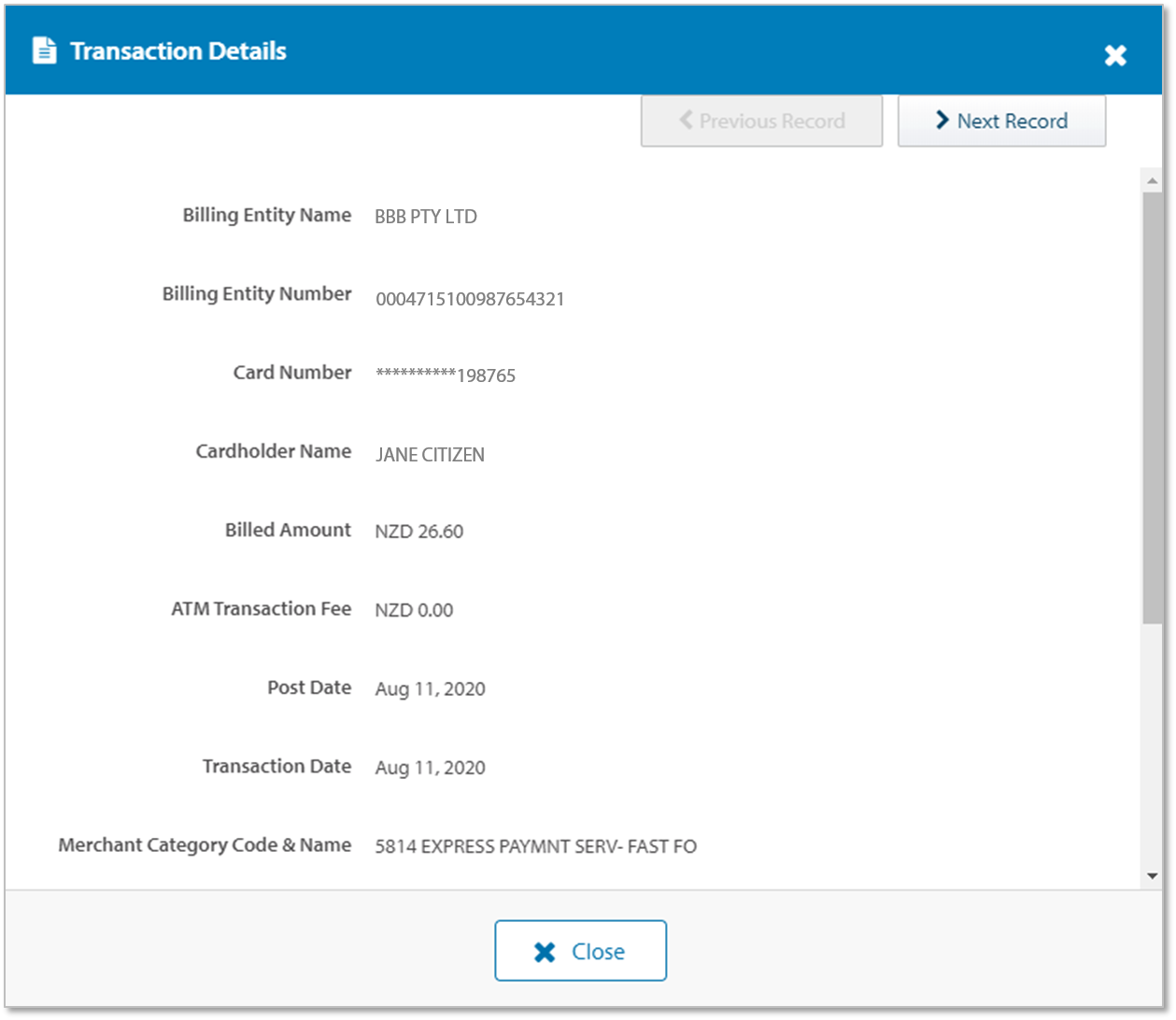 | Post Date | The date the transaction was finalised and posted to the card. |
