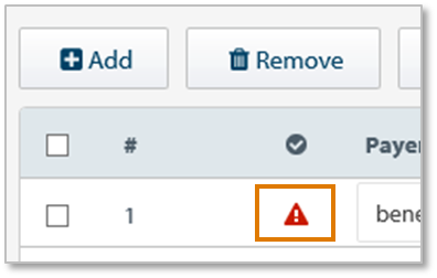 - 画面上の強調表示されたフィールドを確認し、必要に応じて更新します。支払者にエラーがある場合、自動引き落とし指示に警告メッセージが表示されます: