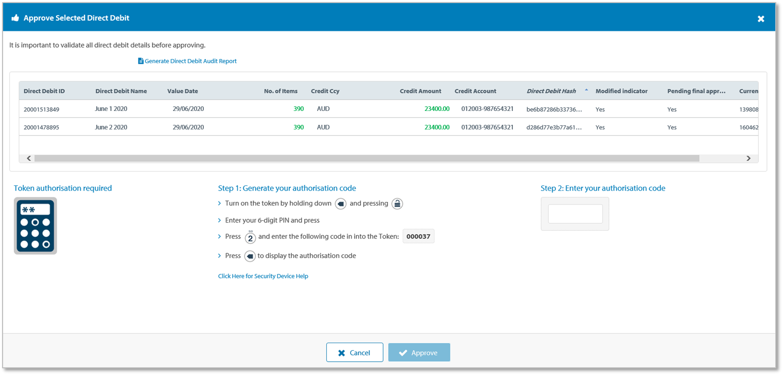 由於這是最終批准,您需要對直接扣款進行數位簽署,才能將其發送給銀行進行處理。 ANZ Digital Key